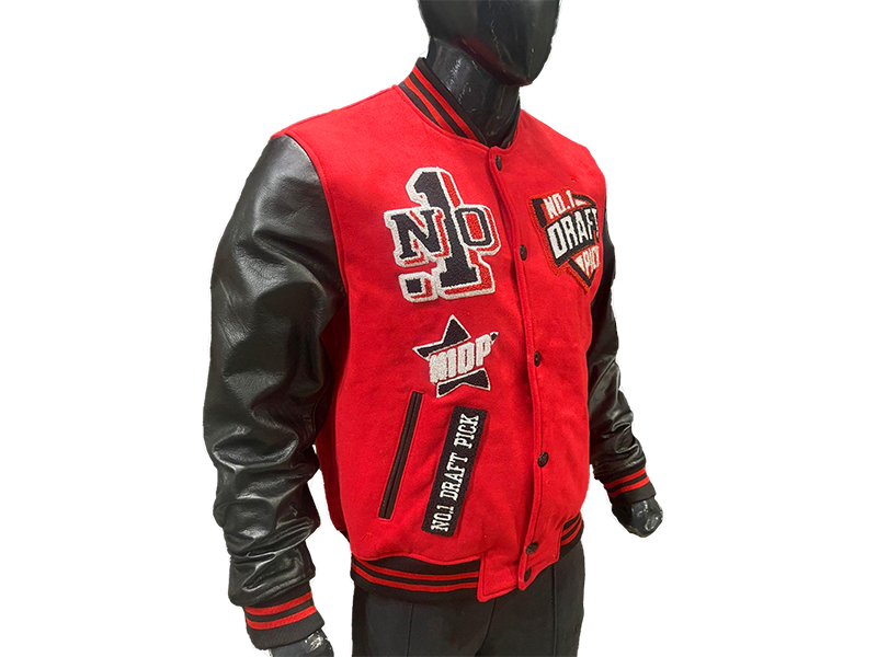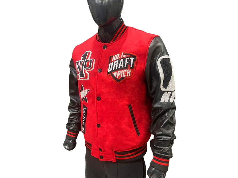 N1DPVSJ-4000-N1DP VARSITY (CHICAGO-ATL RED/BLACK WOOL BODY-LAMB SKIN LEATHER SLEEVE)
